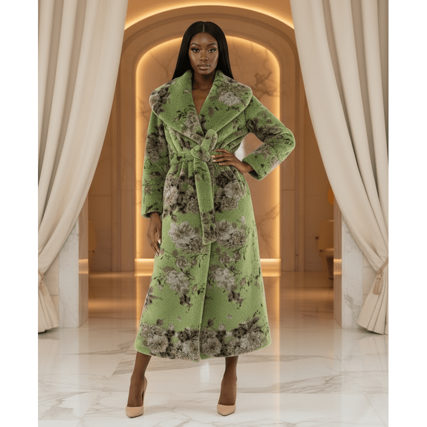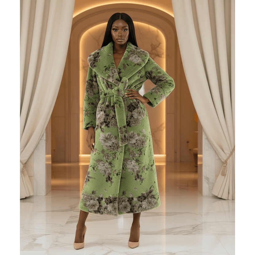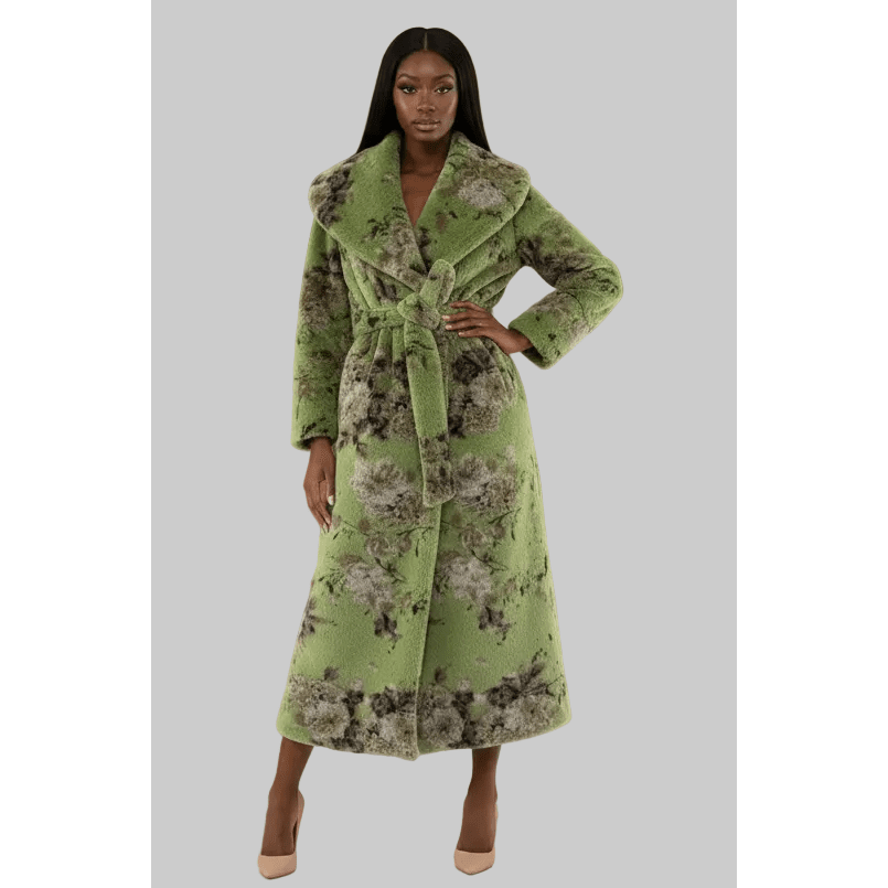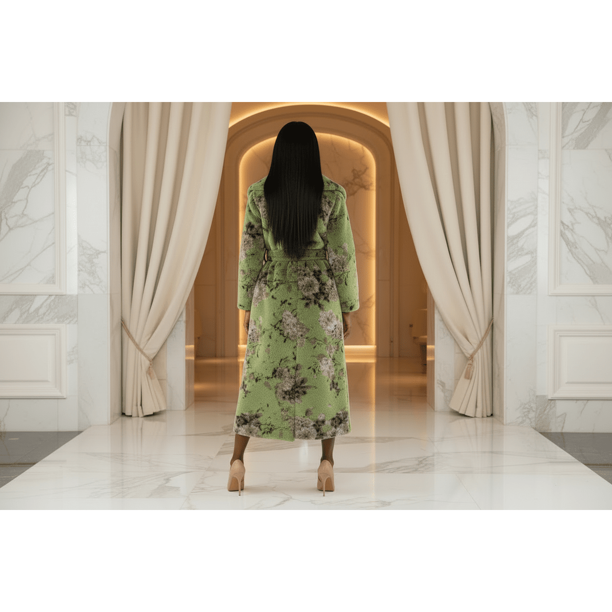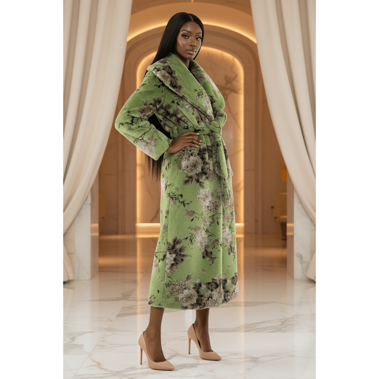 TEDDY Green Luxe Floral Faux Coat - IvyEkongFashion