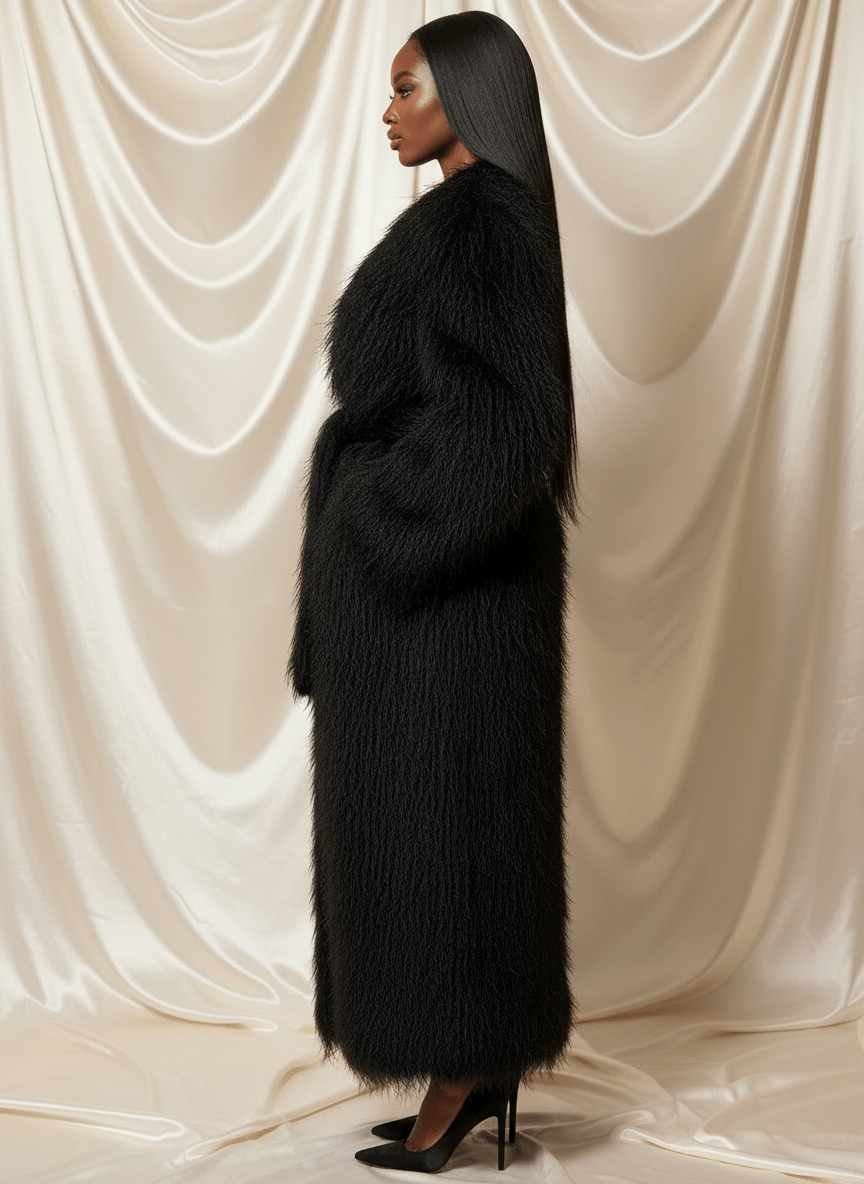 LONDON Black Luxe Shaggy Faux Fur Coat - IvyEkongFashion